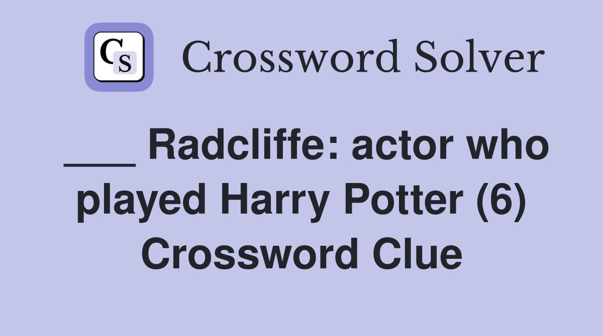 Radcliffe: actor who played Harry Potter (6) Crossword Clue Answers