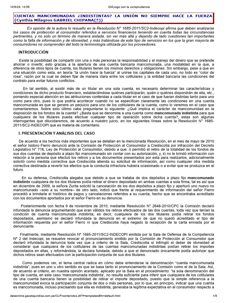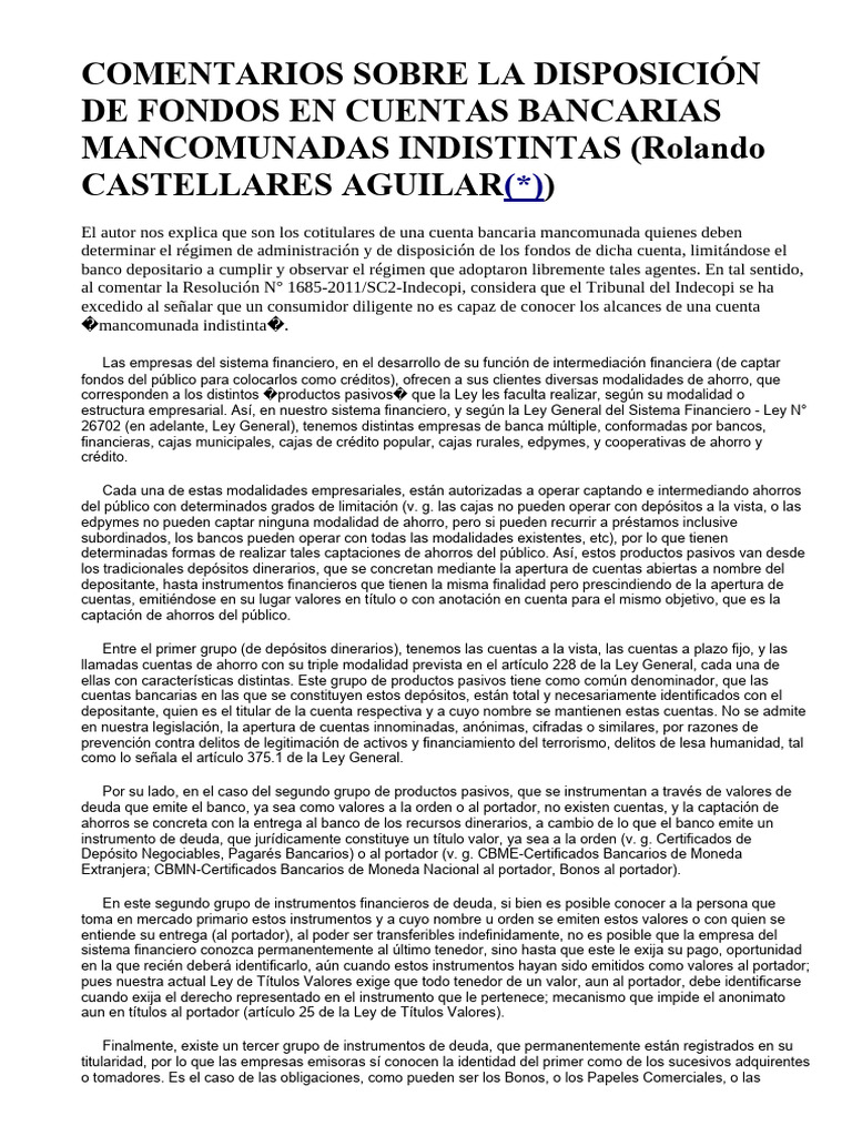 DJ 2011 157 Cuentas Mancomunadas Indistintas PDF Los consumidores