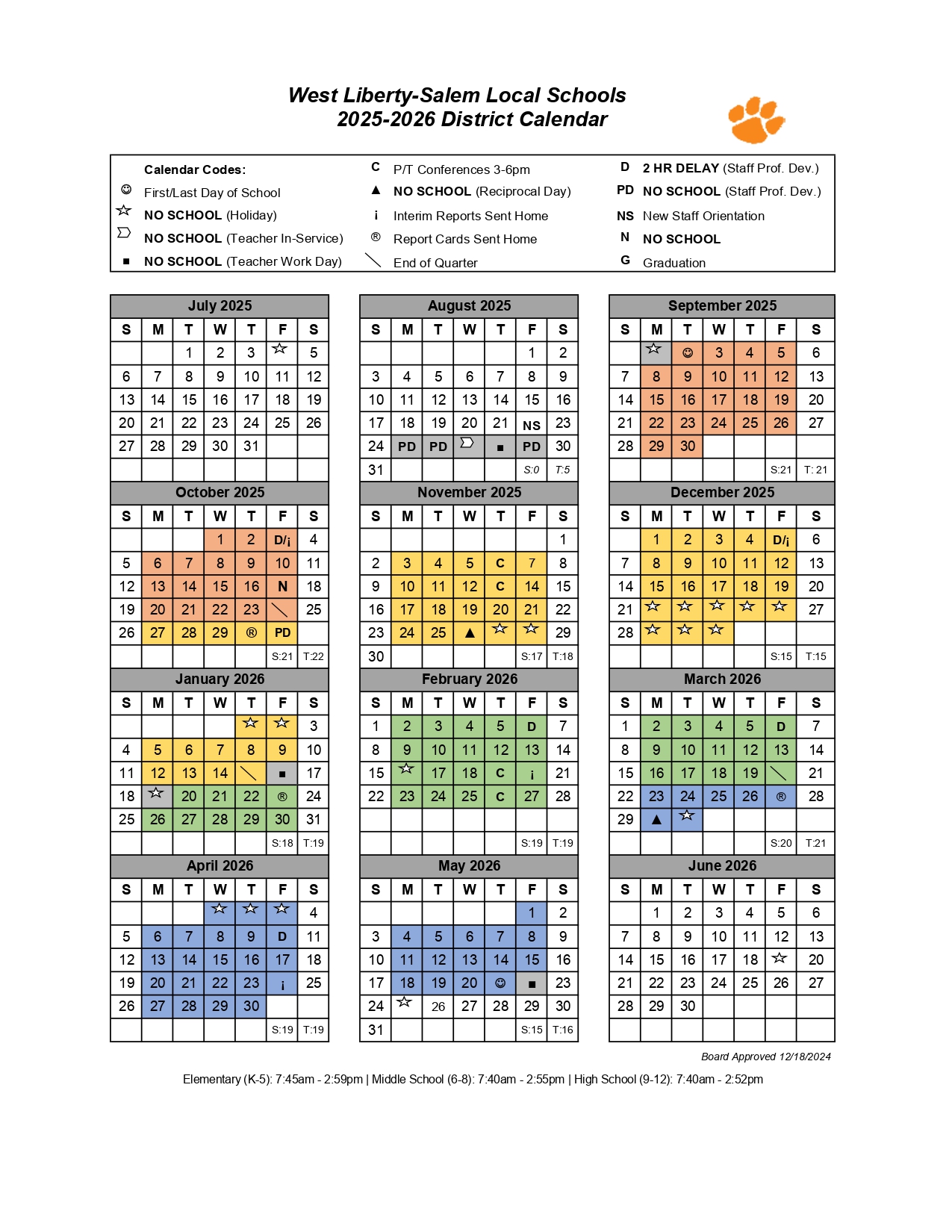 West Liberty Salem Local School District Calendar 25 26 Revised PDF