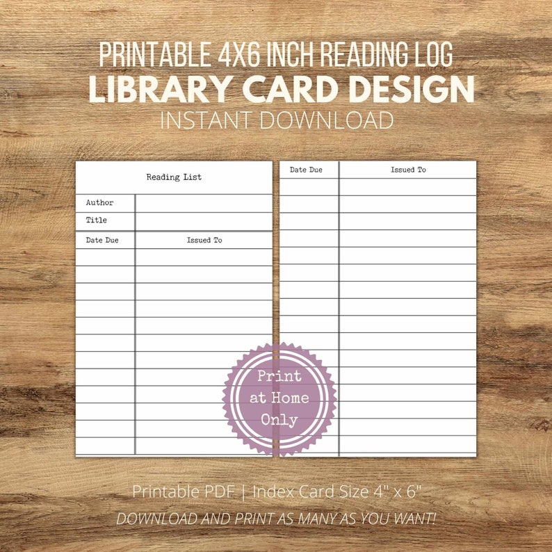 Library Card Style Reading Log Printable 4 X 6 Inch Index Card Blank
