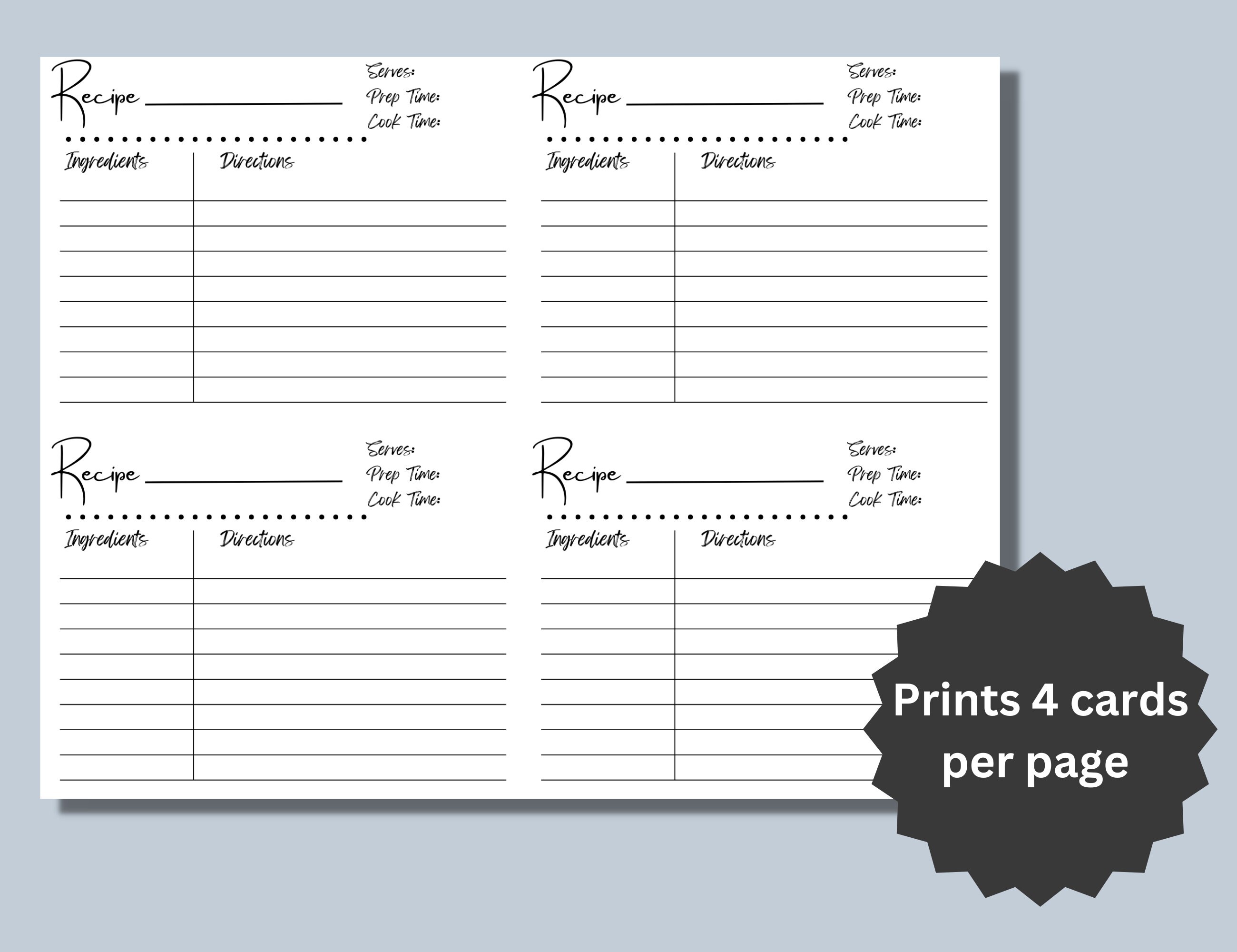 Recipe Card Template Simple Recipe Card Minimalist Recipe Card Etsy