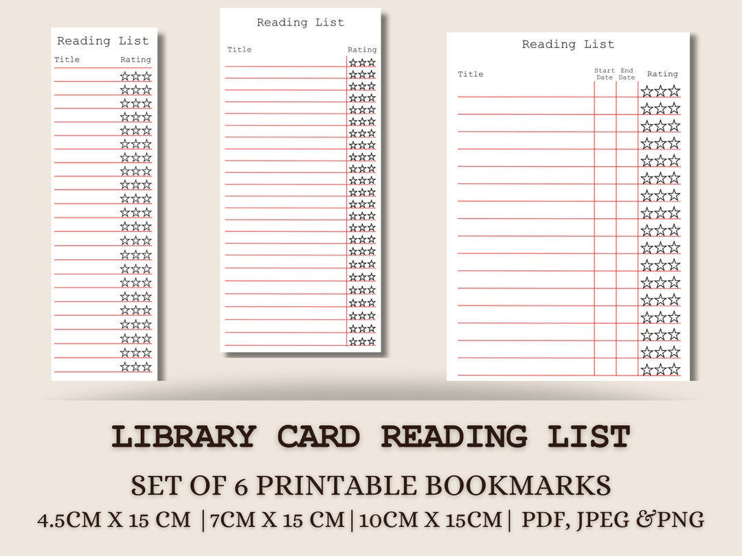Printable Library Card Bookmark: Reading Log Tracker (PDF) Etsy
