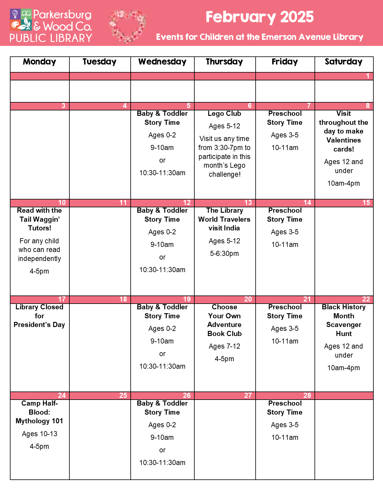 YRR calendar 2025 02 Parkersburg Wood County Public Library