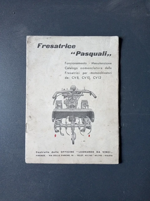 LIBRETTO USO E Manutenzione D #39 epoca Motocoltivatore Fresatrice Pasquali