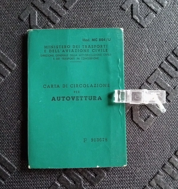 LIBRETTO CIRCOLAZIONE D #39 EPOCA Autovettura Fiat 124AF TIPO 1110