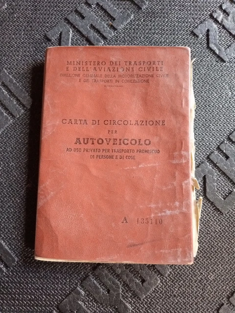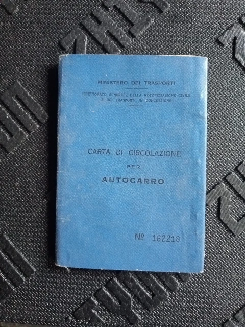 LIBRETTO CARTA DI Circolazione d #39 epoca Autocarro Fiat 110PC Romanazzi