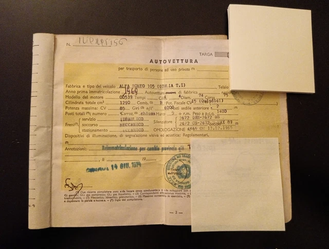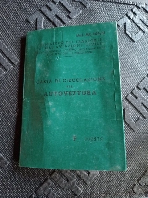 LIBRETTO CARTA DI Circolazione Alfa Romeo Giulia Ti 1969 Solo Uso