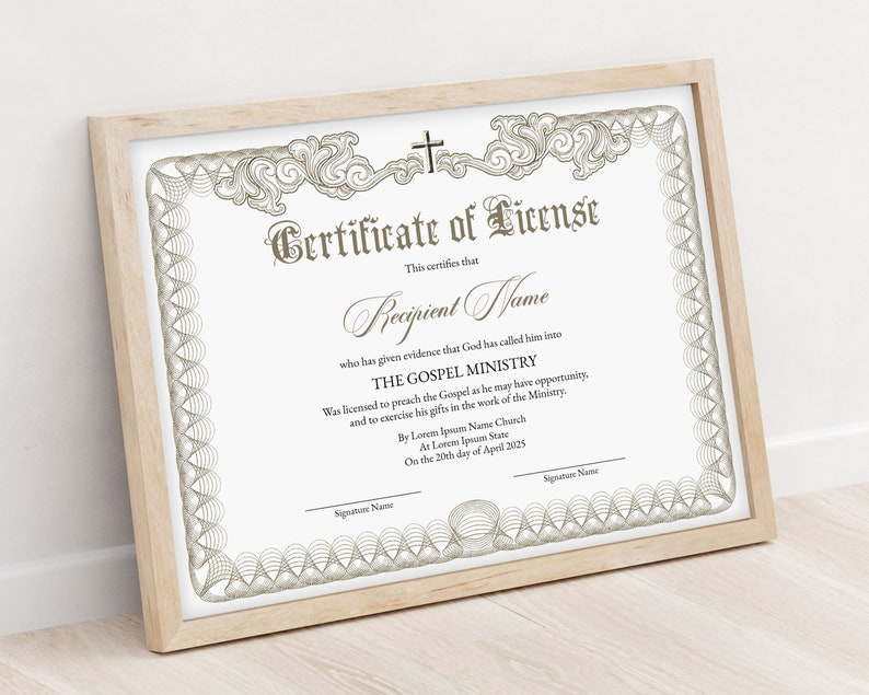 License to Preach Elegant Editable Ordination Certificate Etsy Gift