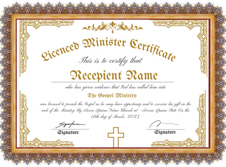 Editable Licensed Minister Certificate Template Printable Etsy
