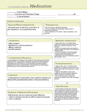 Medication ATI lidocaine ACTIVE LEARNING TEMPLATES Medication STUDENT