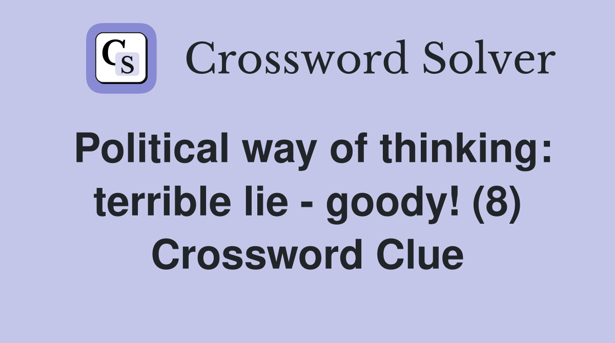 Political way of thinking: terrible lie goody (8) Crossword Clue