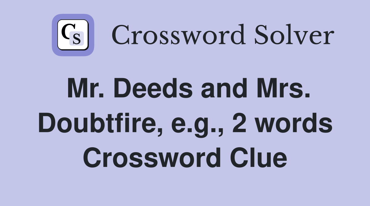 Mr Deeds and Mrs Doubtfire e g 2 words Crossword Clue Answers