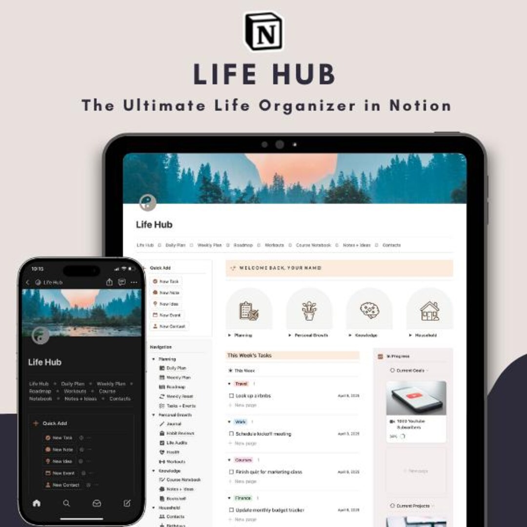 All in one Notion Life Hub Notion Hub to Organize Your Life Goals