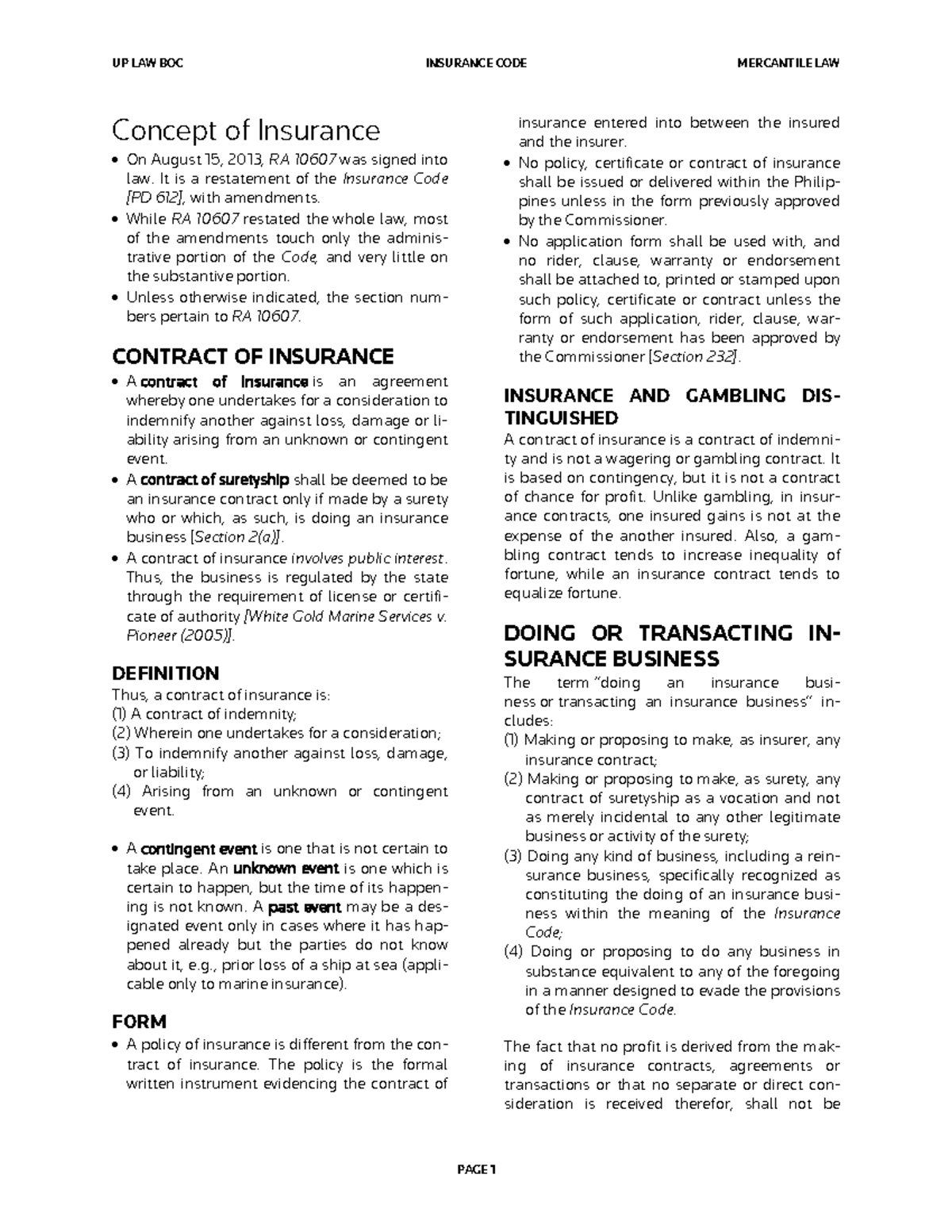 Prelim Reviewer (Insurance Law Part 1) Concept of Insurance x On