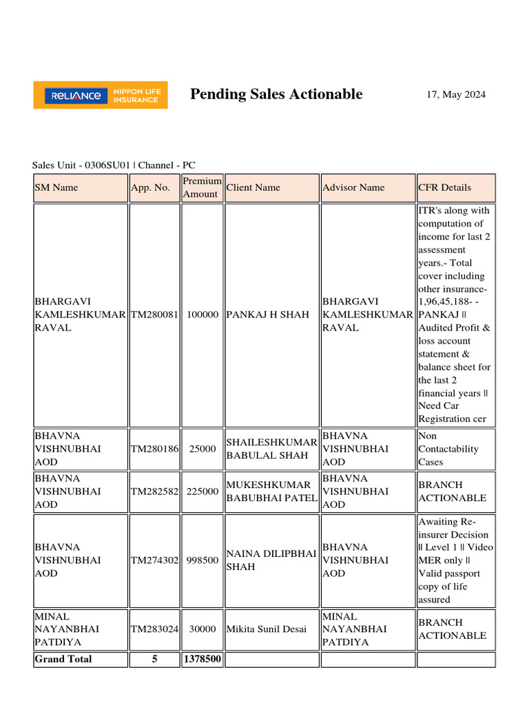 Merabima Insurance Brokers Private Limited NOP Premium Pending As On