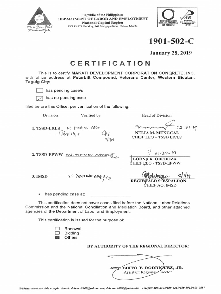 FM LR 012 Application For Certificate of No Pending Case PDF