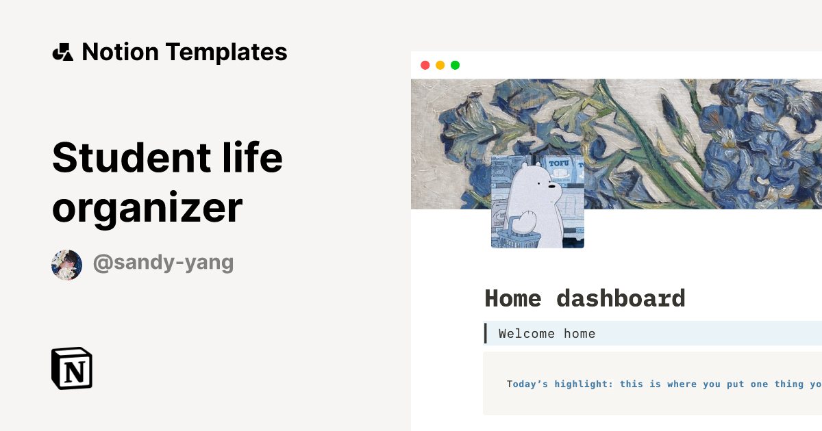 Student life organizer Template by Sandy Yang Notion Marketplace