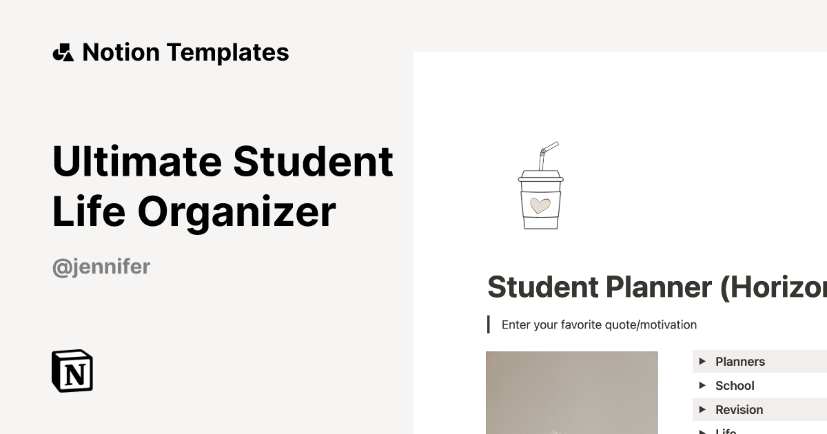 Ultimate Student Life Organizer Template by Jennifer Notion Marketplace