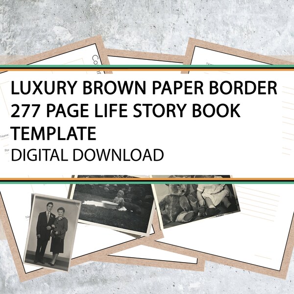 Luxury 277 Page Life Story Book Template BROWN PAPER BORDER Etsy