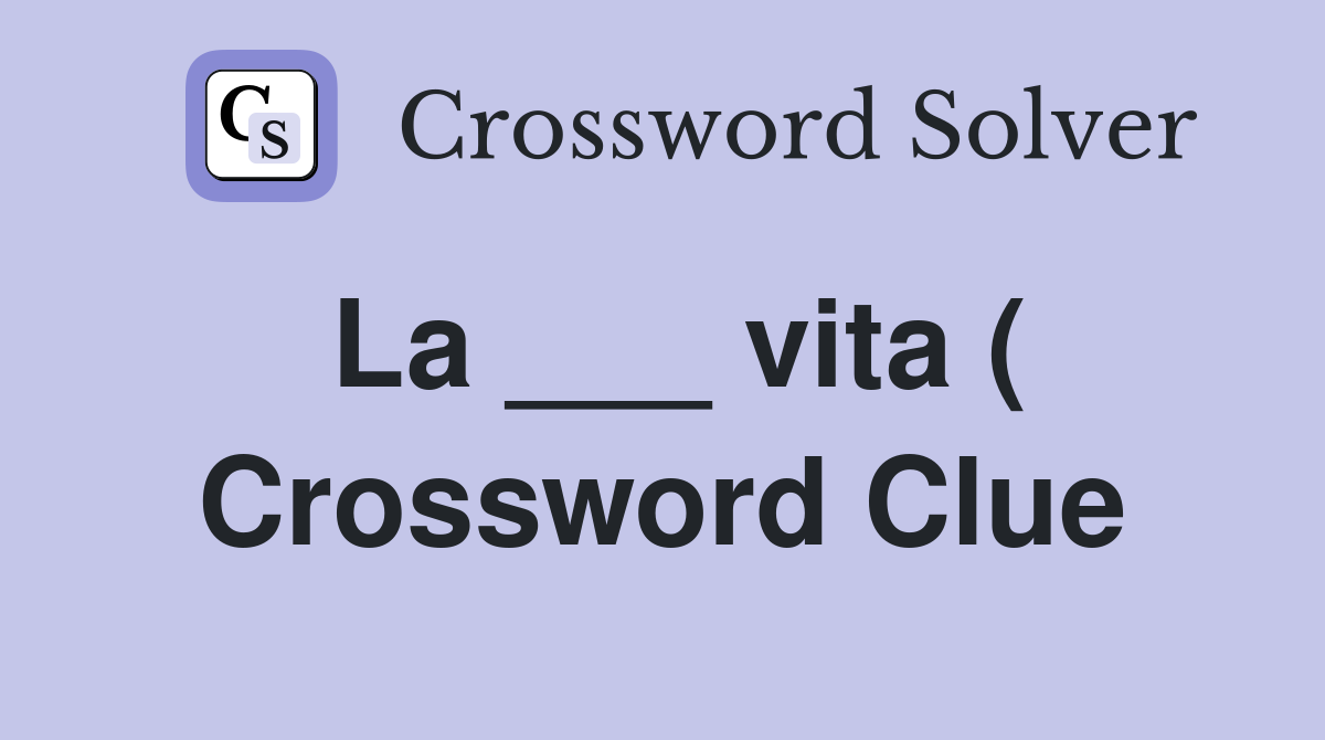 La vita ( the sweet life ) Crossword Clue Answers Crossword Solver