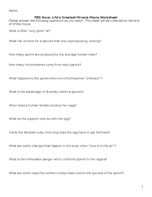 Understanding Human Reproduction: PBS Nova Movie Worksheet Course Hero
