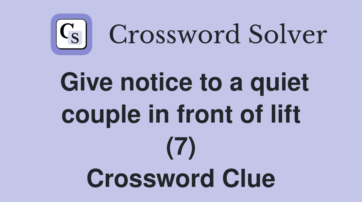 Give notice to a quiet couple in front of lift (7) Crossword Clue