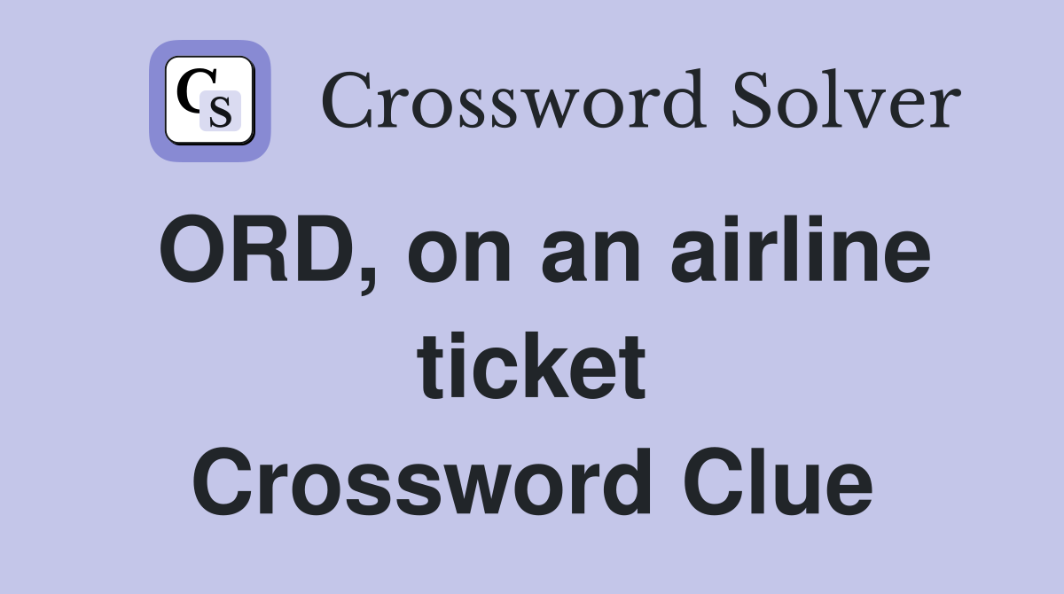 ORD on an airline ticket Crossword Clue Answers Crossword Solver