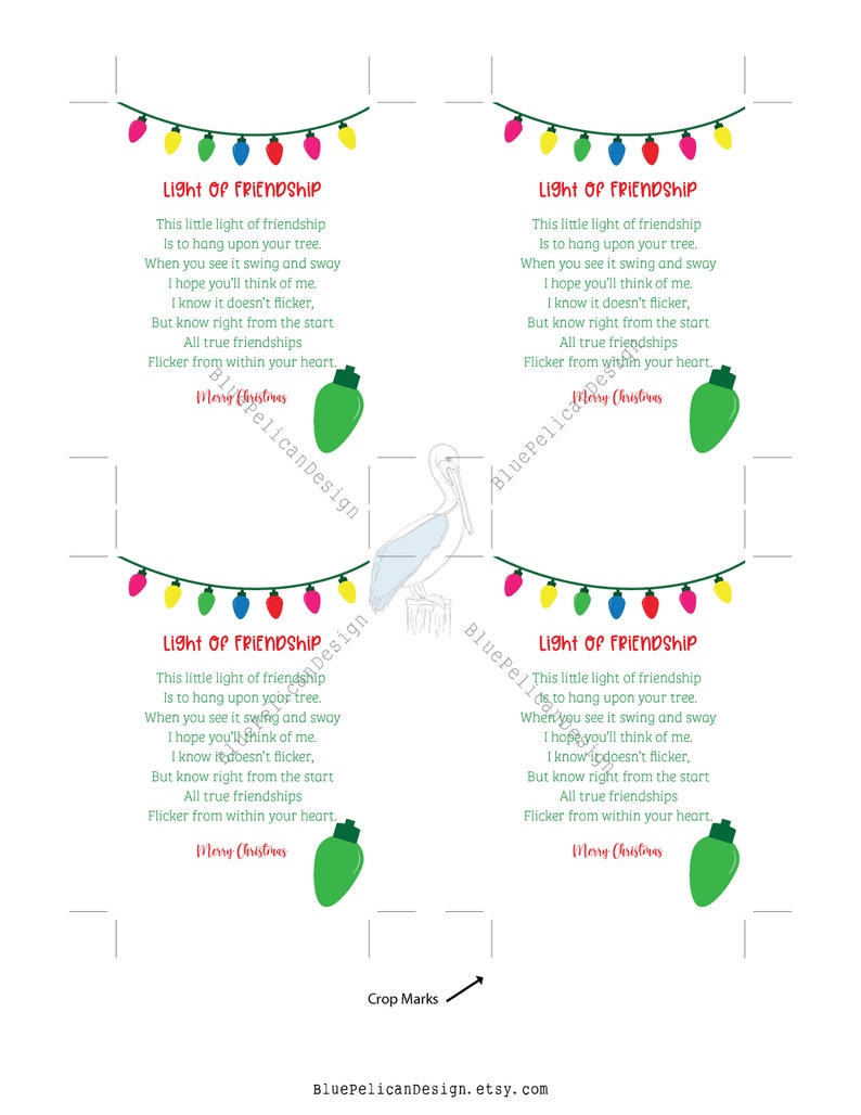 Light of Friendship Gift Tag Printable Christmas Ornament Etsy