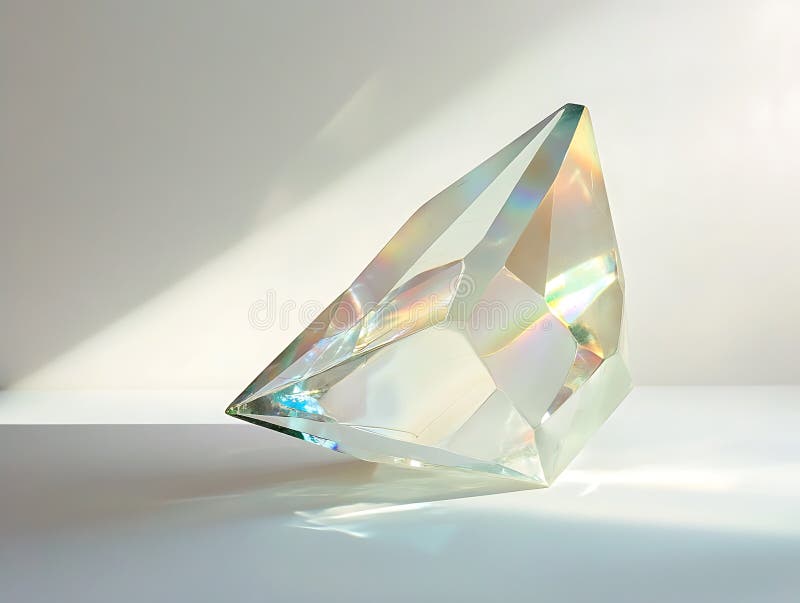 Sparkling Crystal Prism Refracting Light on White Surface Stock