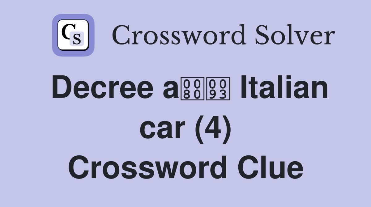 Decree a Italian car (4) Crossword Clue Answers Crossword Solver