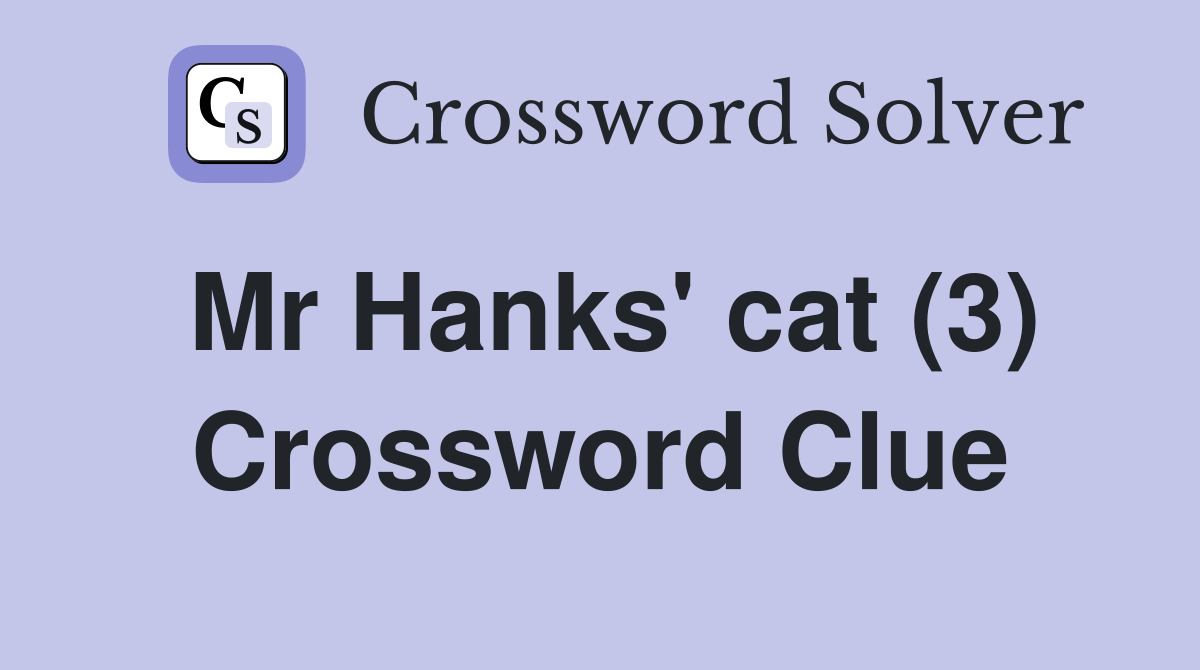 Mr Hanks #39 cat (3) Crossword Clue Answers Crossword Solver