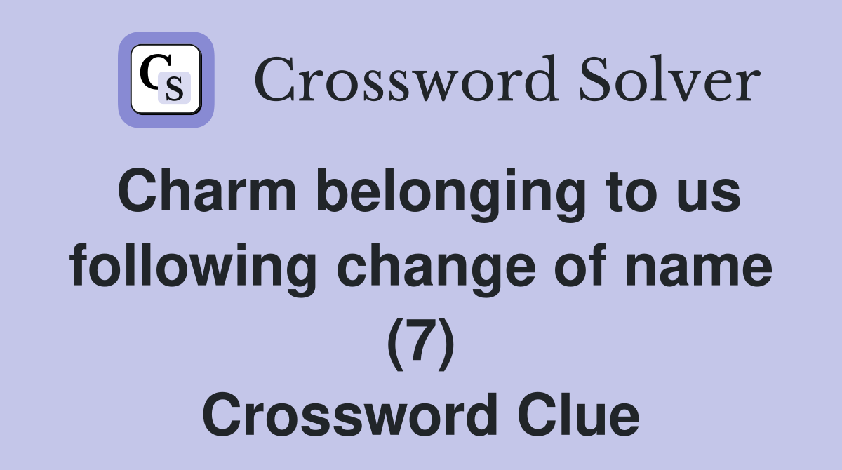 Charm belonging to us following change of name (7) Crossword Clue