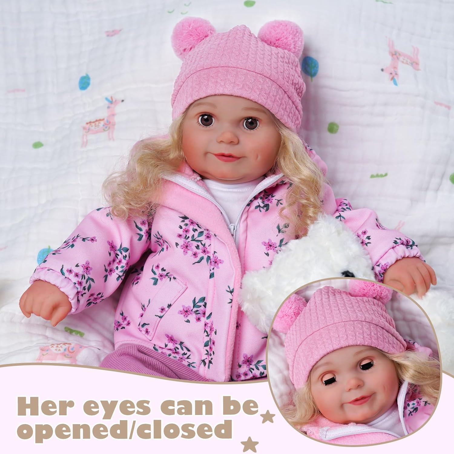 BABESIDE Muñeca Reborn Realista con Ojos que Se Abren y Cierran