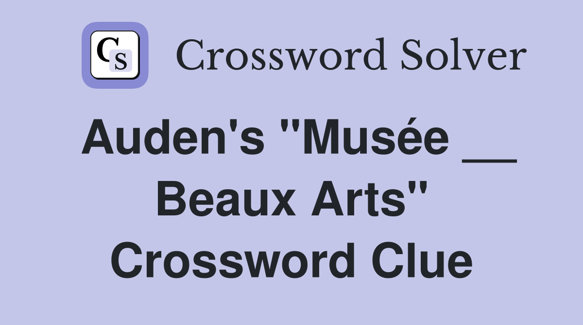 Auden #39 s quot Musée Beaux Arts quot Crossword Clue Answers Crossword Solver