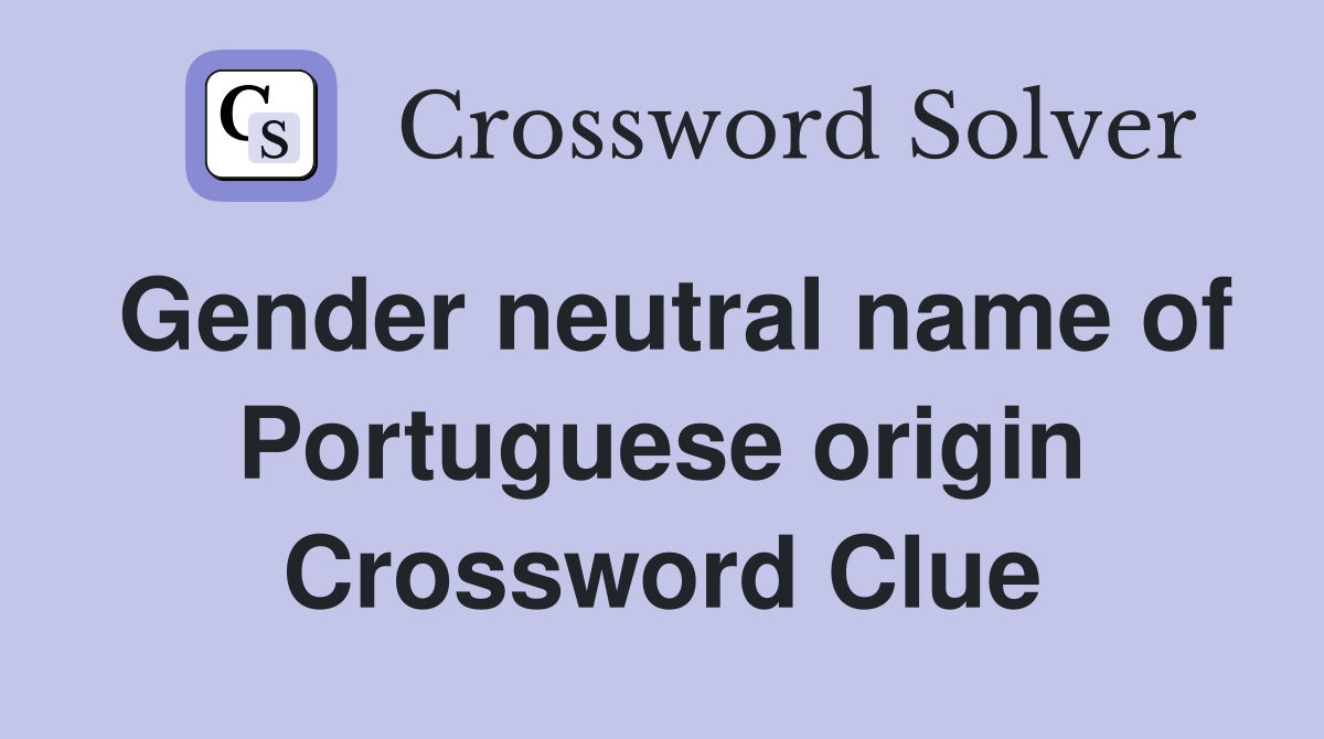 Gender neutral name of Portuguese origin Crossword Clue Answers