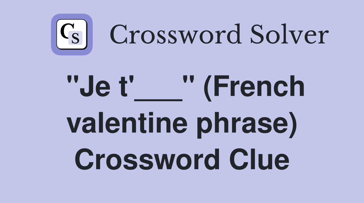 quot Je t #39 quot (French valentine phrase) Crossword Clue Answers
