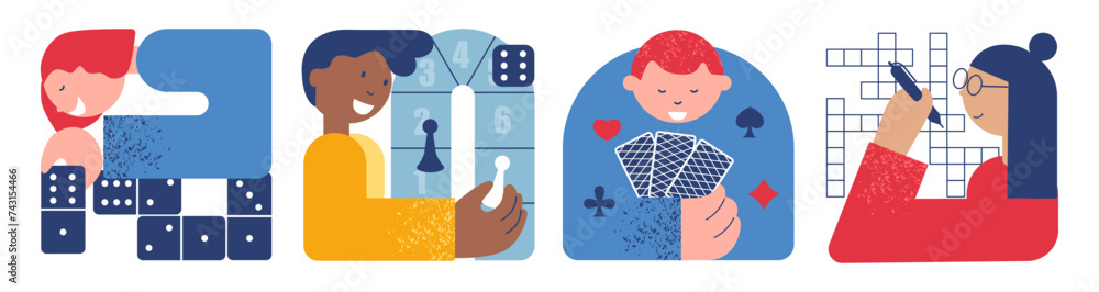 People Playing Board Games Cards and dominoes game Crossword puzzle