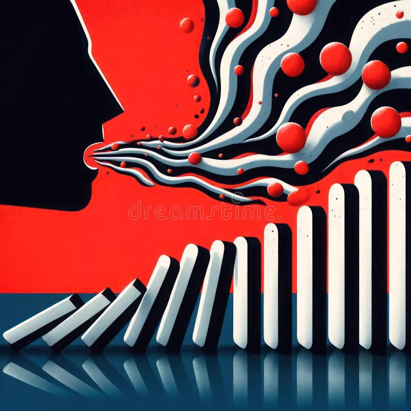 Abstract Profile with Waves and Falling Dominoes on a Red and Blue