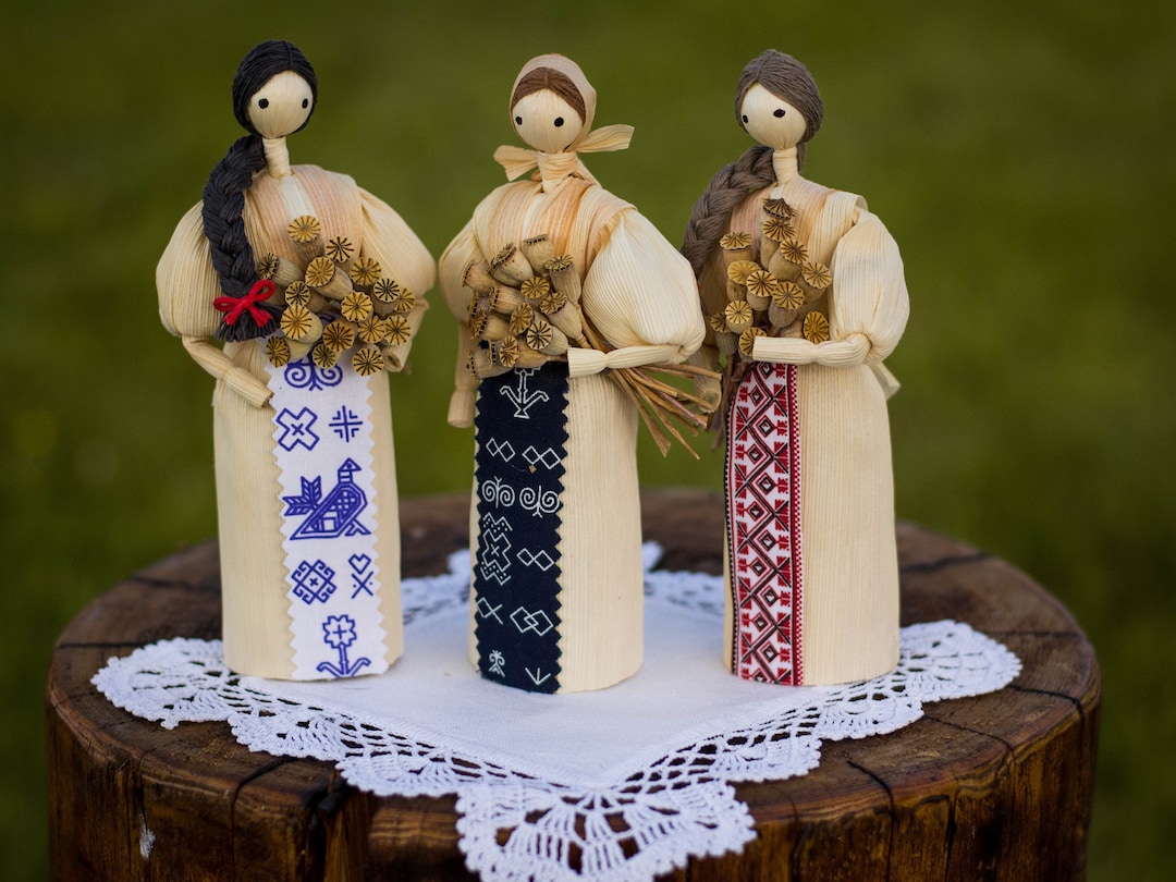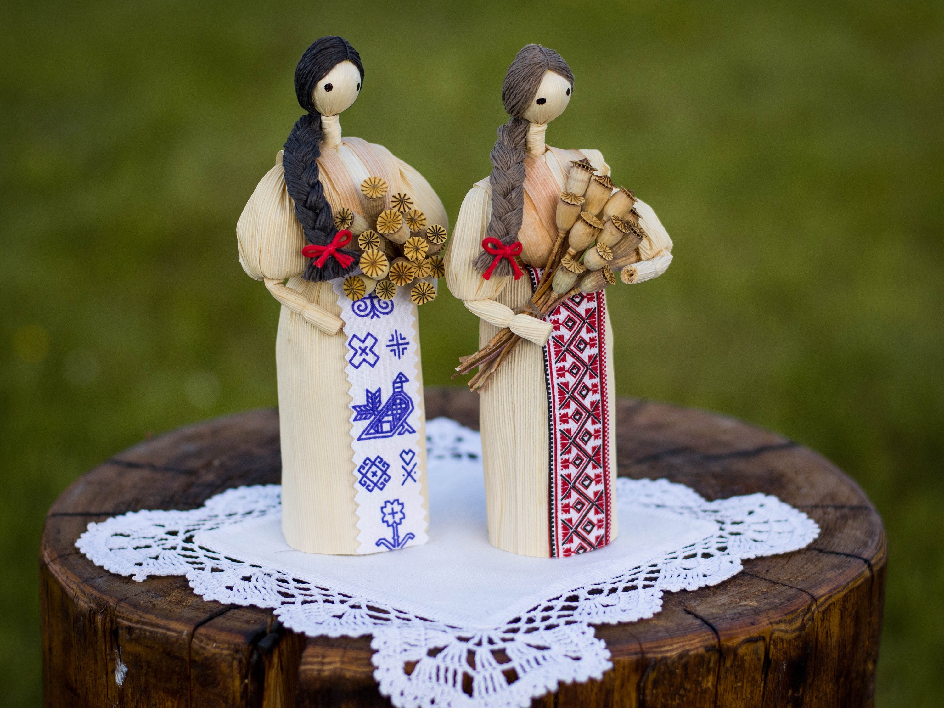 Traditional Folk Art Dolls With Little Poppy Head Handmade Corn Husk