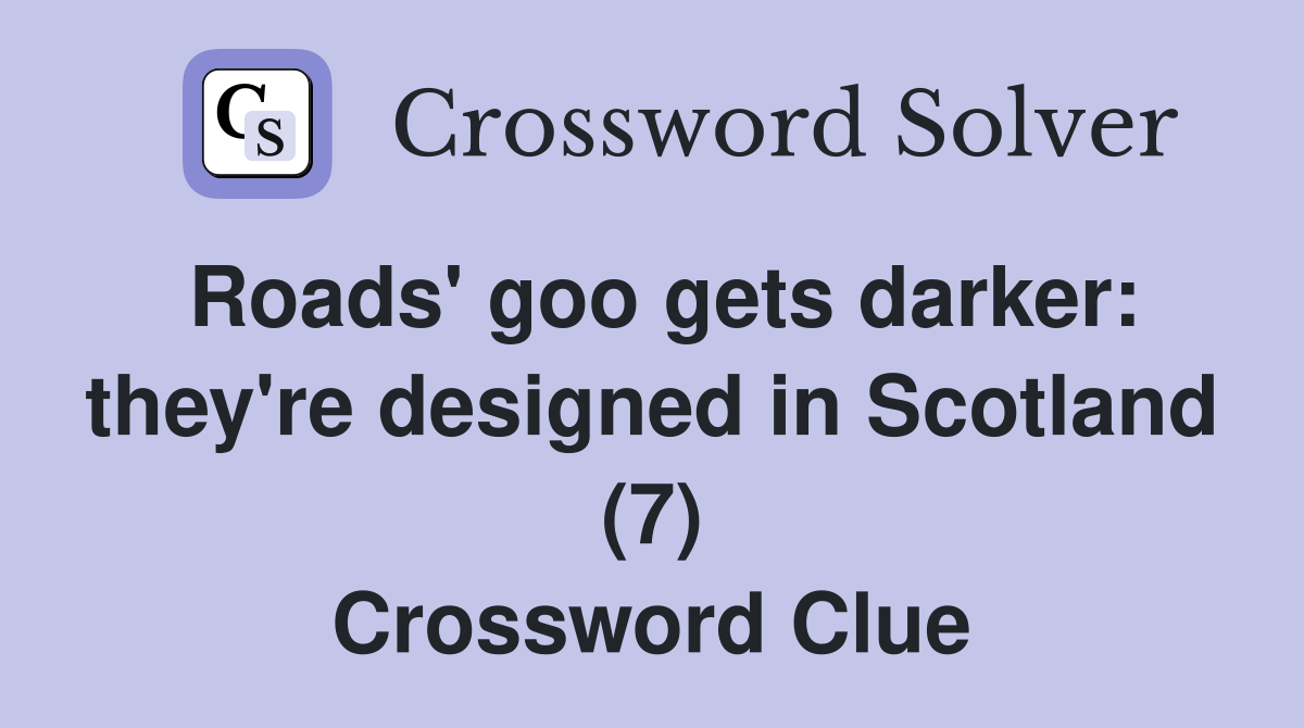 Roads goo gets darker: they re designed in Scotland (7) Crossword