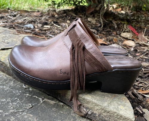 B O C Brown Distressed Leather Clogs Women #39 s 8M Heavy Stitching