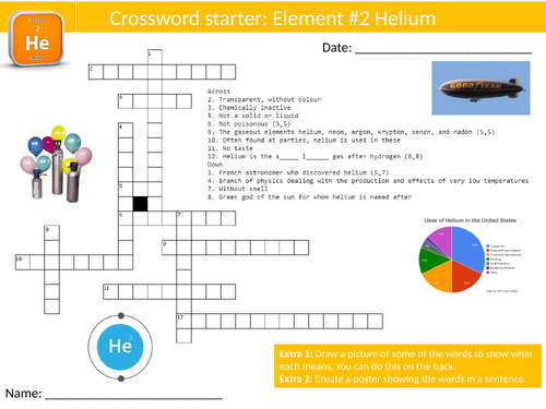 Helium Crossword Starter Settler Activity Homework Cover Chemistry