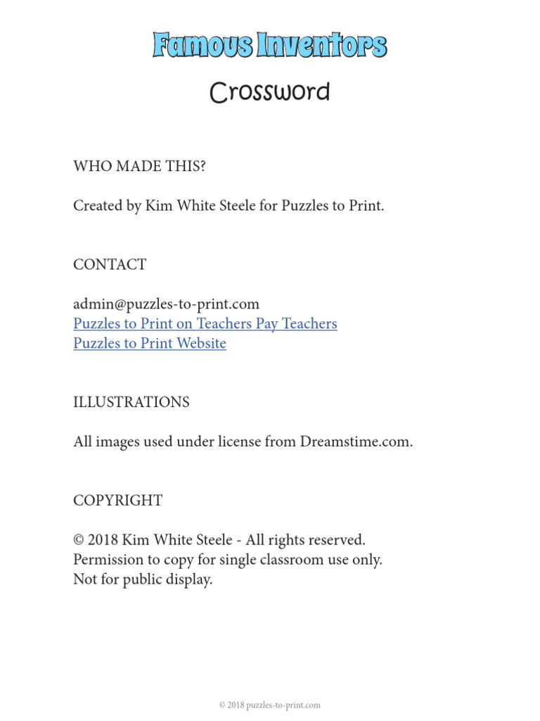 Famous Inventors: Crossword PDF Engines Machines