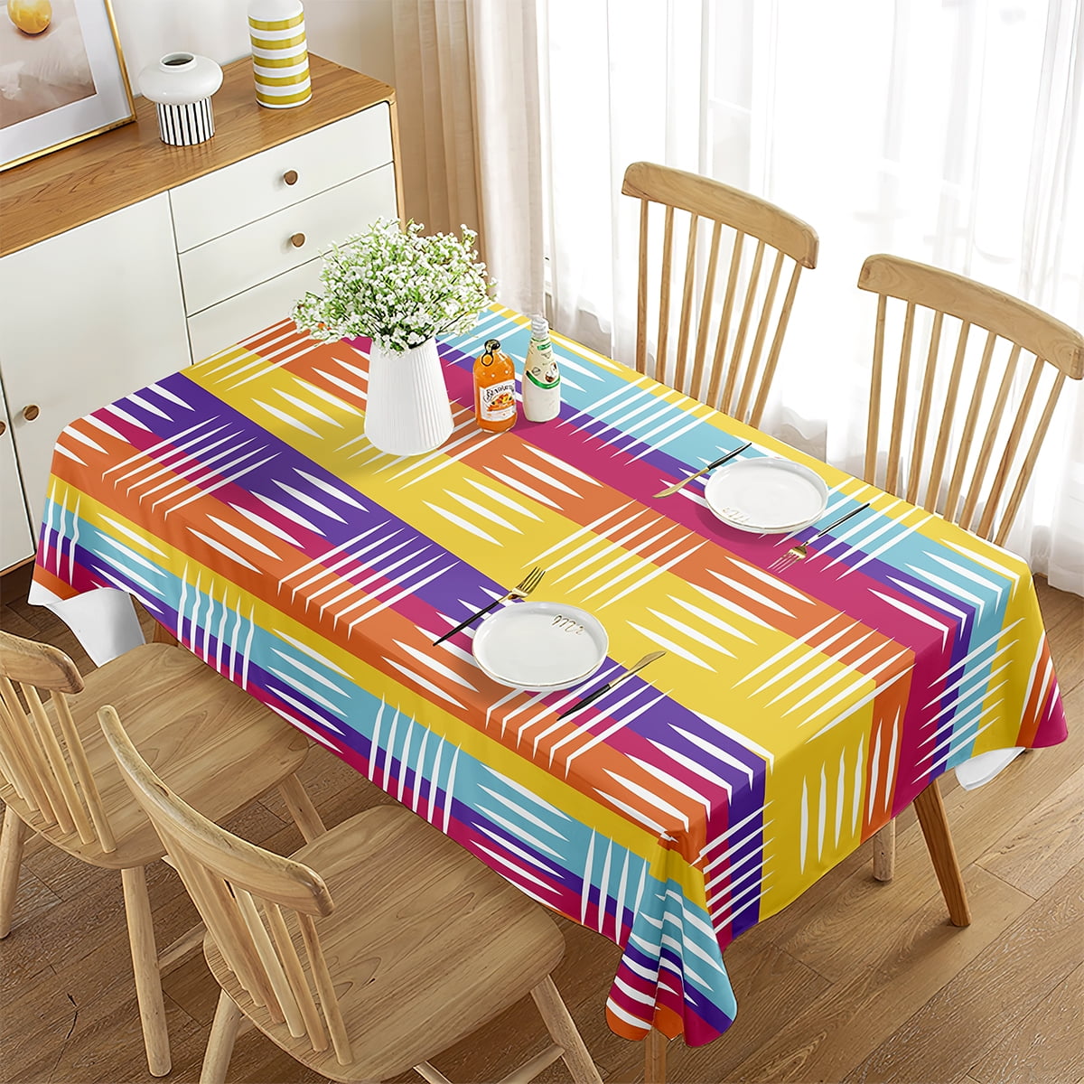 Colorful Tablecloth Funky Pop Art Radiant Lines Design in Wave Like