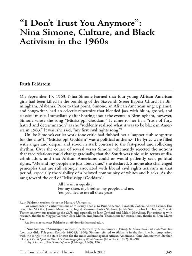 Feldstein Nina Simone Culture and Black Activism in The 1960s PDF