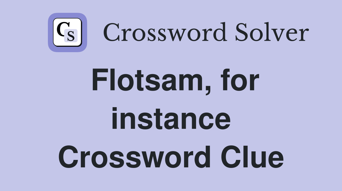 Flotsam for instance Crossword Clue Answers Crossword Solver