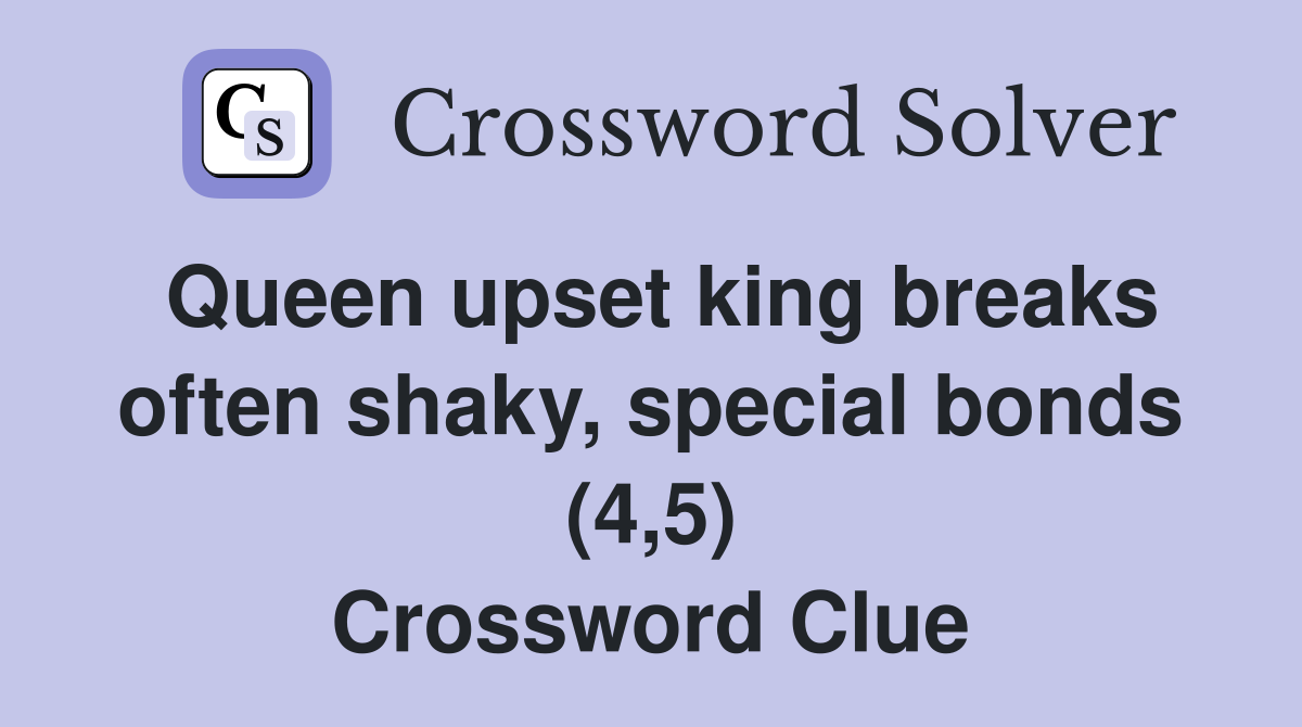 Queen upset king breaks often shaky special bonds (4 5) Crossword