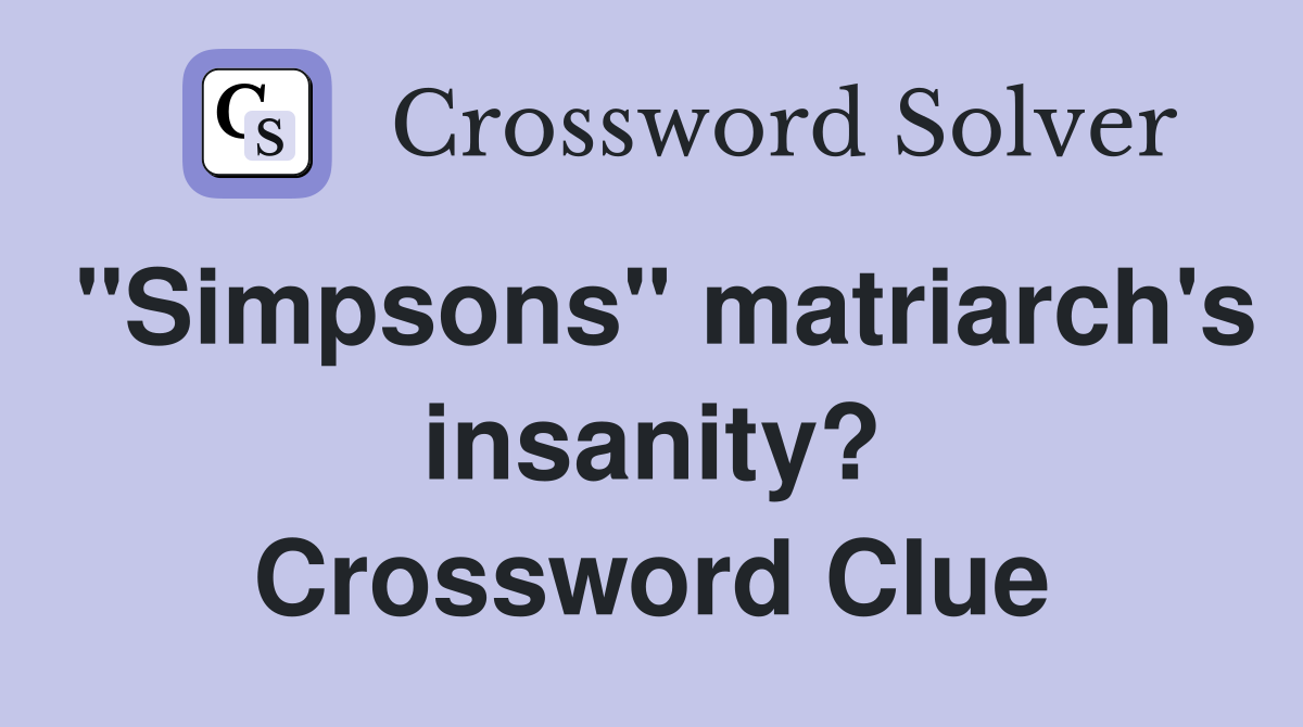 quot Simpsons quot matriarch #39 s insanity? Crossword Clue Answers Crossword