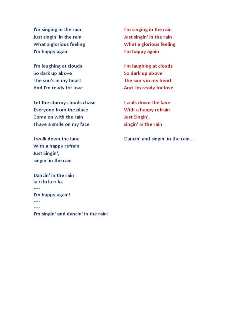 Singing in the Rain song lyrics Singing in the rain Rain song lyrics