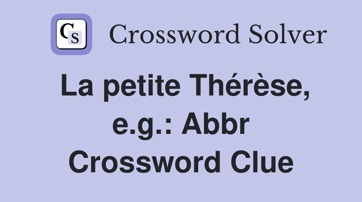 La petite Thérèse e g : Abbr Crossword Clue Answers Crossword Solver